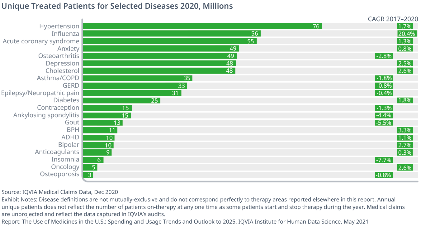 Exhibit 13: Unique Treated Patients for Selected diseases 2020, Millions
