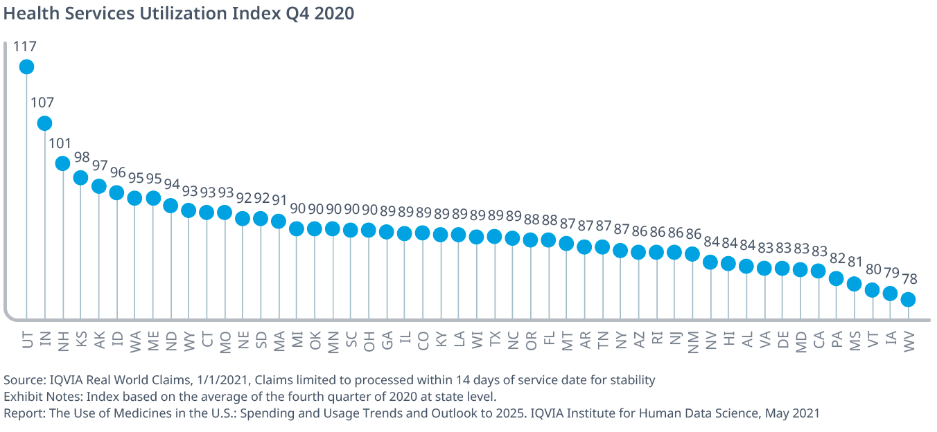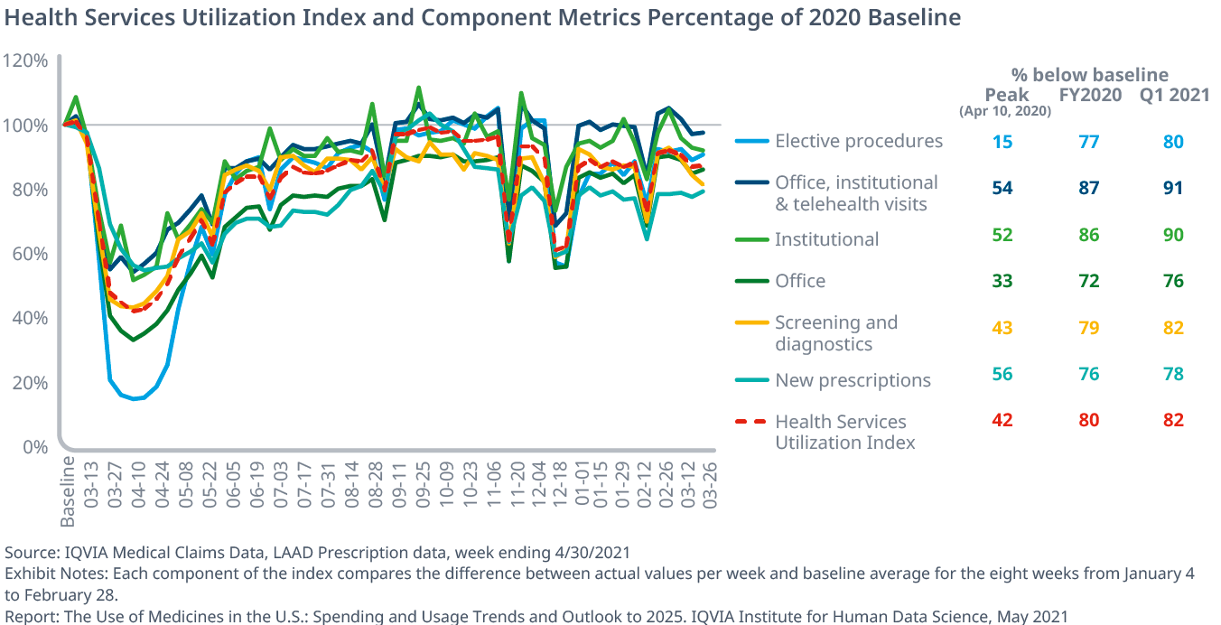 Exhibit 2: Health Services Utilization Index and component metrics percentage of 2020 baseline