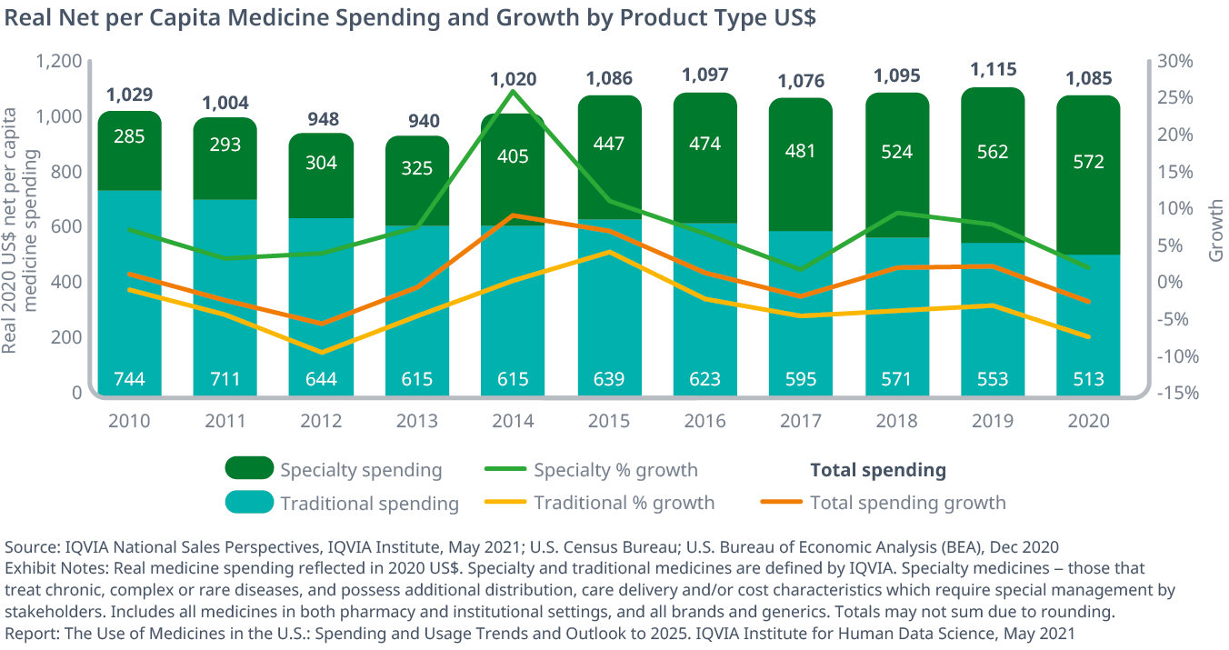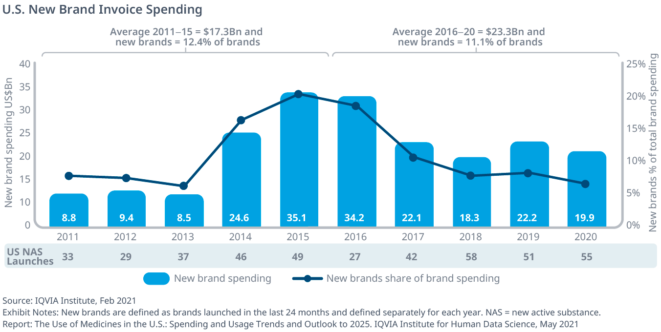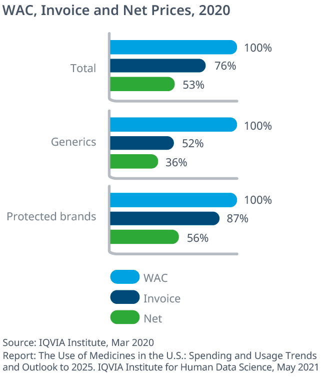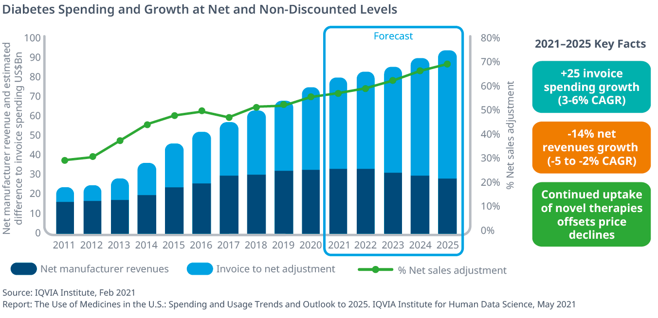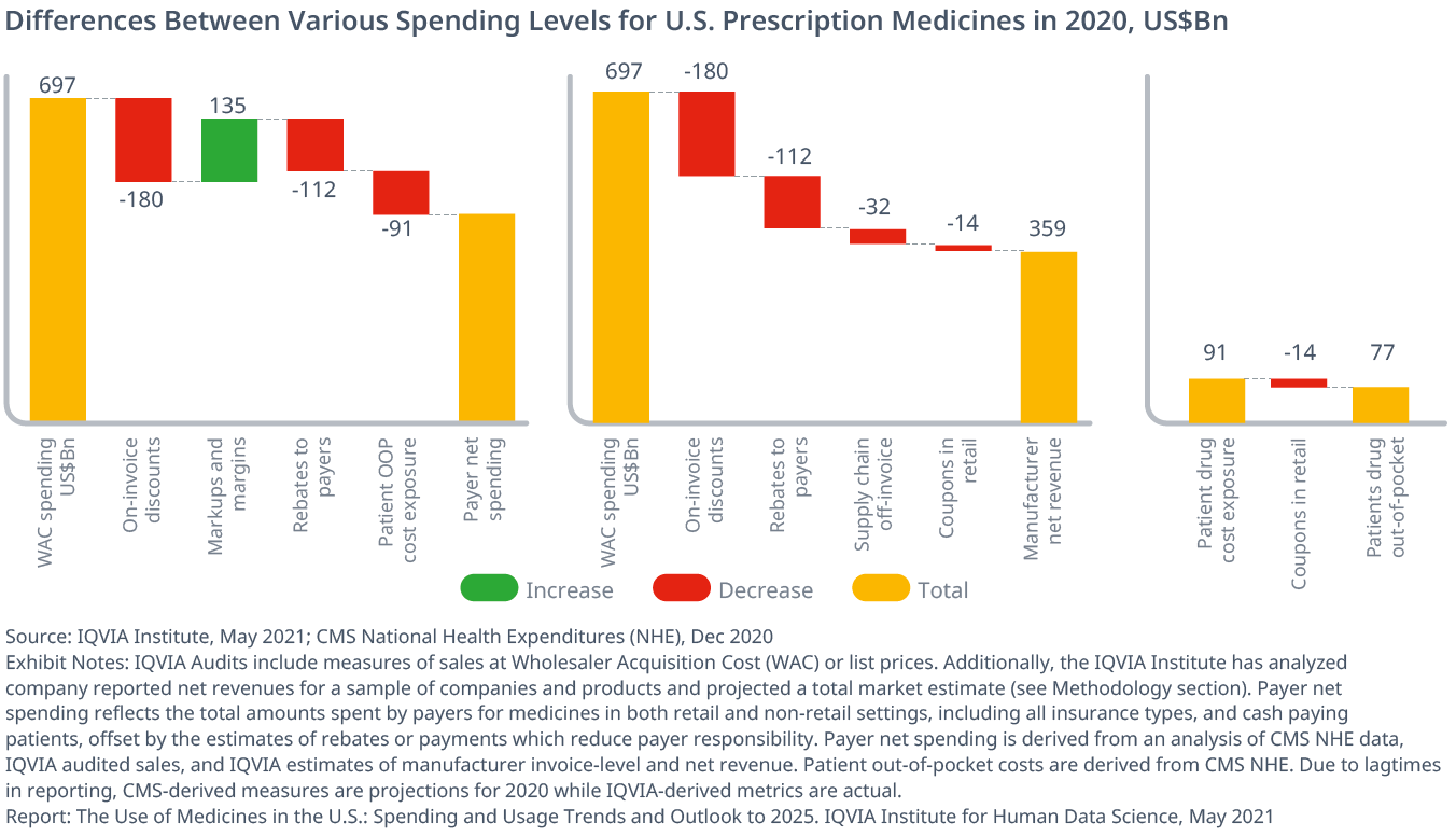 Exhibit 49: U.S. Medicine Spending and Growth at Invoice-level and Estimated Net 2011–2025