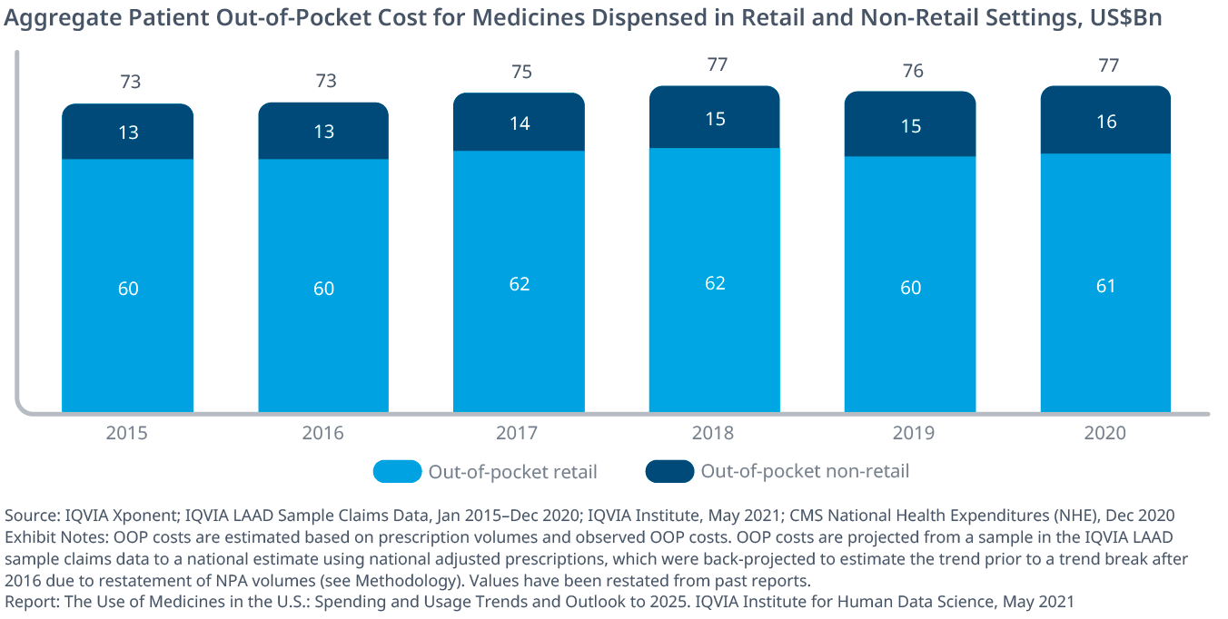 Exhibit 39: Aggregate Patient Out-of-Pocket Cost for Medicines Dispensed in Retail and Non-retail Settings, US$Bn