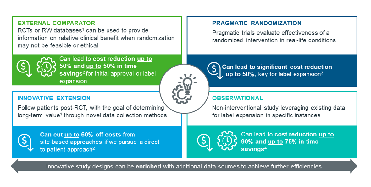 Figure 2: Real world innovative designs can create time or cost efficiencies to counter rising drug development costs.
